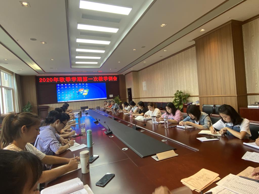 教务处袁忠副处长强调近期工作安排以7月22日发的近期工作安排文件通知为准并对近期教学工作安排进行补充。一是排课原则上以两节课为一个单位连堂编排,每堂课45分钟,一次课编制一份教案,个别课程若有多节连堂课的可统一编制一份教案;二是教学工作总结归档工作,系部教学工作总结由教务处存档,教师个人工作总结由系部存档;三是2020年秋招生教辅教材采购,教师用书先采购,学生用书根据招生情况另行采购;四是学分设置,学分包括课程学分、创新创业学分,根据我院学生实际情况,需在创新创业学分基础上增加特色学分。请各系集思广益,根据课程特征提出学分项目建议;五是关于实践教学计划,由于产教融合中心尚未正式启动,实践教学暂无具体安排。各专业可按教学需要拟定实践教学体系,包括见习、实习、实验、跟岗实习、顶岗实习等,并编制三年规划,分步实施计划(准确到每年、每学期)设备、设施、场地、基地、师资等需提出明确需求。重点是秋季学期课程实践教学计划,要求各系于本学期开学前一周报教务处。