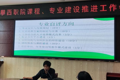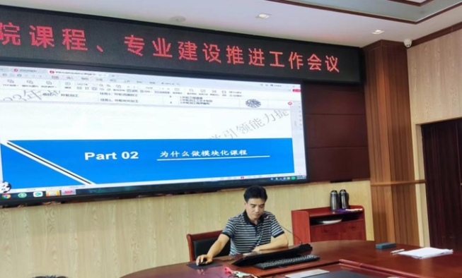 教务处常务副处长袁忠在会议上分享了自己在北京师范大学参加“四川省高职院校教务处长教学引领能力提升培训班”学到的先进的课程建设经验,其重点介绍的模块化课程设计的方法、课程开发典型工作任务分析(BAG)法,对学校的课程建设有很好的借鉴作用。