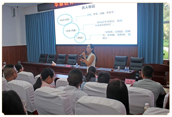 她采取视频播放、列举经典案例、互动送礼物、图片展示、结合几所学校所面对的学生的现状和自己的工作经验、与教师交流互动、归纳总结等方式,从即将被自己废掉的人、练就“四好”塑造最棒的自己、当下决定未来塑造最棒的自己3个方面进行分享。