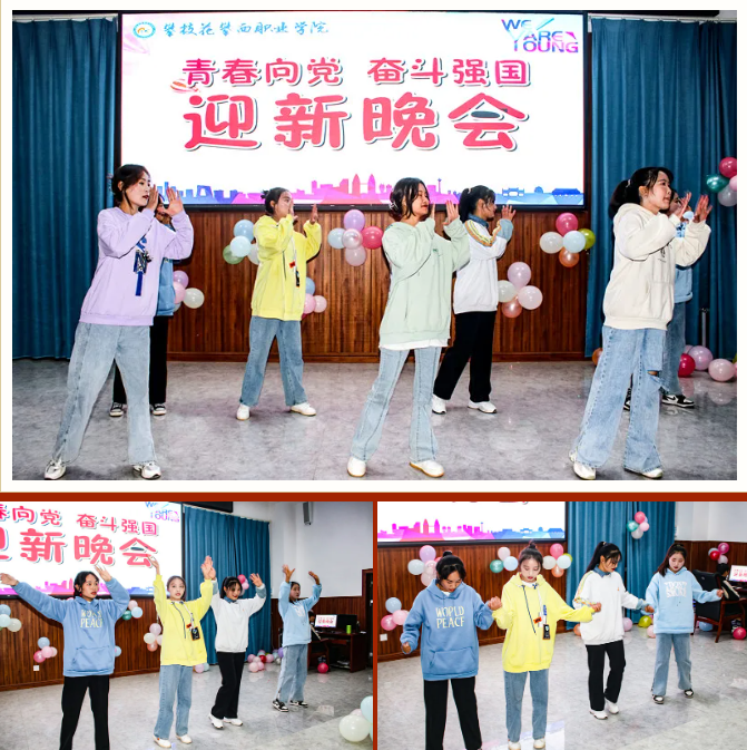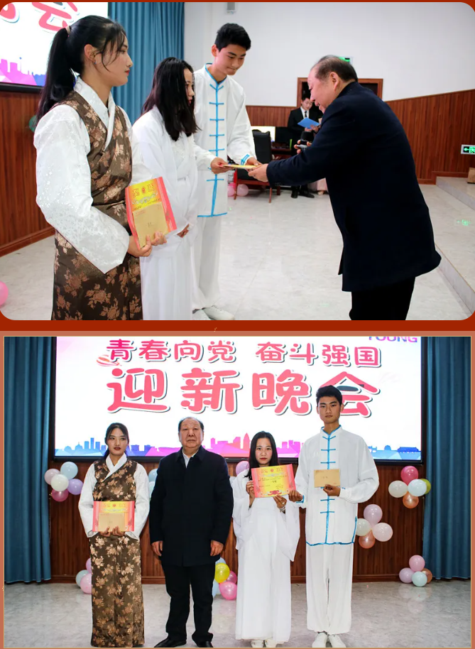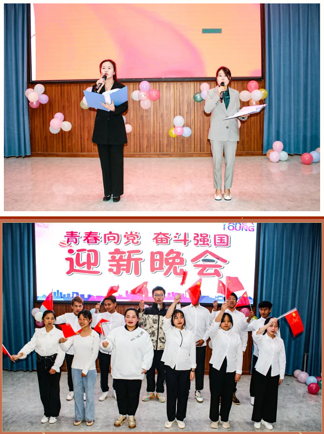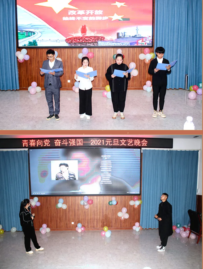2021年12月30日晚,开云在线登录2022年“青春向党 奋斗强国”迎新晚会在二实训楼阶梯教室精彩上演。院长刘国钦教授、执行院长赵海林、副院长李玉德、组织人事处处长曾祥明、教务处处长邹吉辉参加晚会并担任评分嘉宾,各系部处室相关领导及教师、学生欢聚一堂,共同欣赏师生们带来的视听觉盛宴。