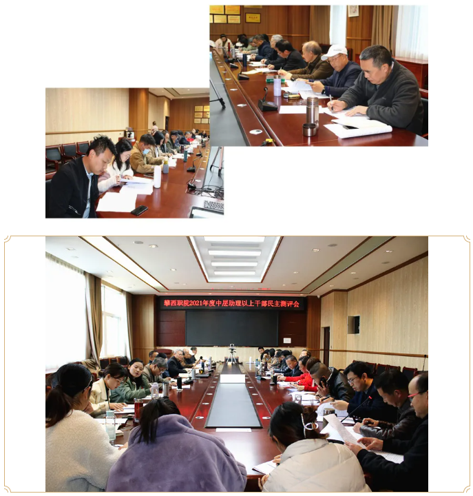 部门和中层干部年度民主测评工作是加强党的全面领导,推动学院决策部署的重要依据,也是激励干部担当作为,促进学院各项工作稳步推进的重要举措。2022年1月11日,开云在线登录在二实训楼4楼会议室召开2021年度中层领导班子民主测评会,学院党支部书记、省教育督导专员万辉君教授,执行院长赵海林,副院长李玉德、周再玉及各处室、系部助理以上干部,教师代表,员工代表参加会议,组织人事处处长曾祥明主持会议。