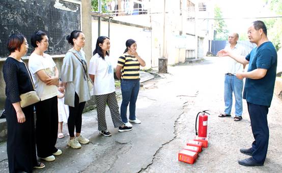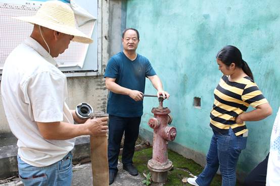 在学生宿舍,倪继成对宿舍管理人员进行培训,他强调了宿舍管理员日常工作职责、宿舍管理制度,要求大家严守岗位,履职尽责。他重点对宿舍消防安全进行讲解,如宿舍管理人员日常生活中如何预防火灾,火灾发生后如何正确拨打报警电话及指导学生逃生自救等。对宿舍典型火灾案例进行分析,指出宿舍火灾的巨大危害性。他讲解并演示了过滤式消防自救呼吸器、干粉灭火器、消防水带的操作使用步骤,并指导大家亲自操作。