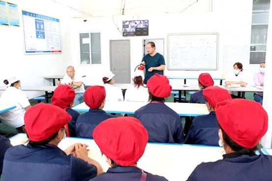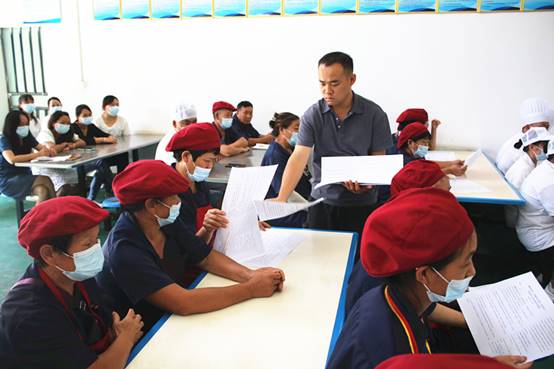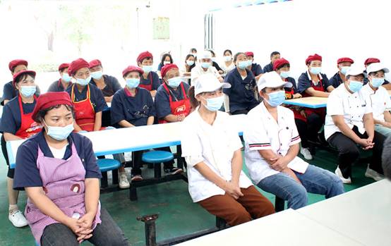 在食堂大厅,学院后勤保卫处副处长倪继成、华森公司分管后勤负责人杨廷歉、技术安全员张云友分别对食堂从业人员进行培训。包括食品安全的重要性,食堂从业人员健康管理、食堂环境卫生、食材入库查验和质量管理、食材加工售卖安全事项、库房食品保持期检查、食品留样、餐饮用具清洗消毒保洁、疫情防控、设备的安全操作、用电安全、灭“四害”工作、上下班交通安全等,要求大家高度重视,规范操作,严格落实各项食品安全管控措施,杜绝食品安全的发生,切实保障师生食品安全。倪继成还对干粉灭火器的使用方法进行现场演示,要求大家注意火灾防范,提高火灾扑救、逃生自救的能力。