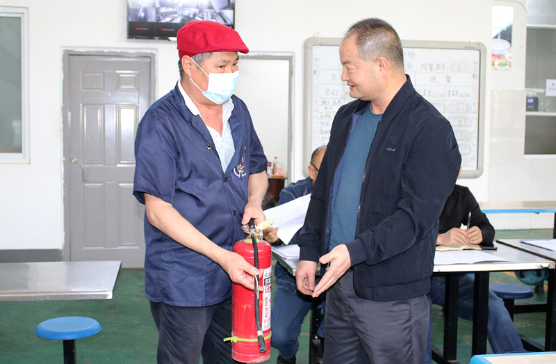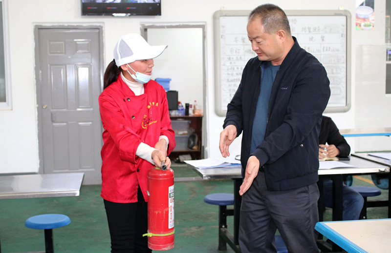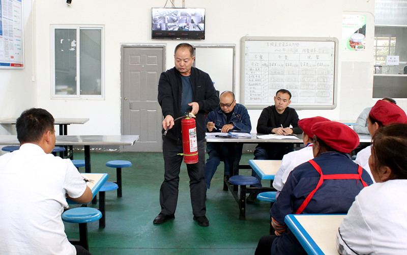 在消防安全培训中,倪继成通过真实的事例向食堂从业人员讲解火灾的巨大危害,就火灾预防、火场逃生、灭火器使用、消防日常管理、火灾处置要求、安全通道有序疏散等消防安全常识进行培训,要求大家在日常生活中要增强火灾防范意识,规范使用电器设施,抓好抓牢每一个小细节,杜绝火灾事故的发生,守住平安。他现场演示了干粉灭火器的使用方法,并邀请员工亲自操作,真正掌握干粉灭火器的用法,对不够规范和不够明白的地方再次给予指导。