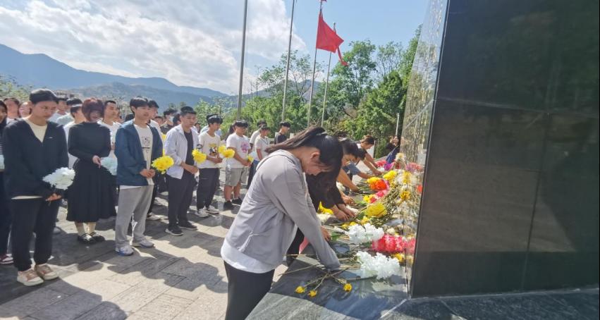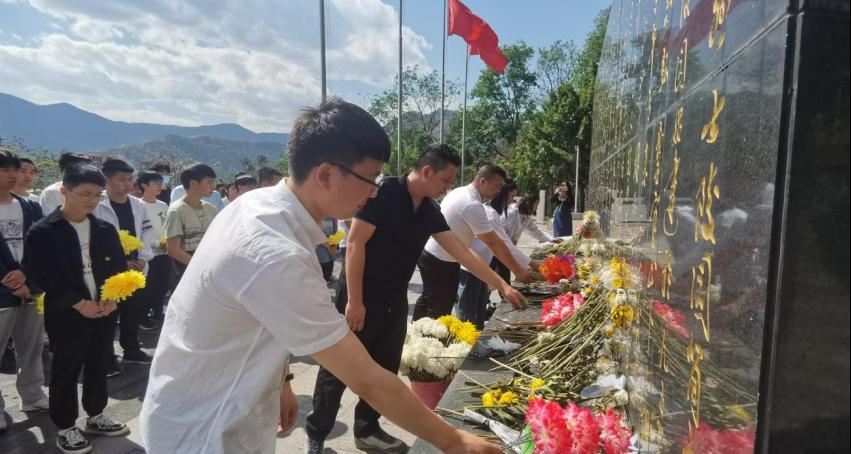 随后,全体师生依次向烈士纪念碑敬献鲜花,并在工作人员的带领下,走进烈士墓园。