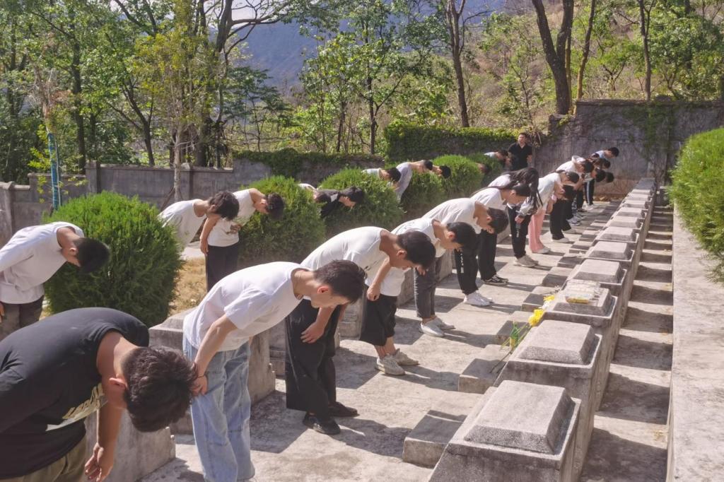 这里长眠着二百五十多位最可敬的人,有为建成昆铁路而光荣牺牲铁道兵战士,有为保卫新生的红色政权为平叛清匪以身报国的民兵战士以及其他无名烈士。他们最小的年仅16岁,他们皆为热血青年和当代军人,为了人民的解放事业,为祖国的经济建设为人民的幸福生活而献出生命。聆听着烈士们的英雄事迹,同学们向烈士三鞠躬,向革命先烈表达无限哀思和敬仰之情。