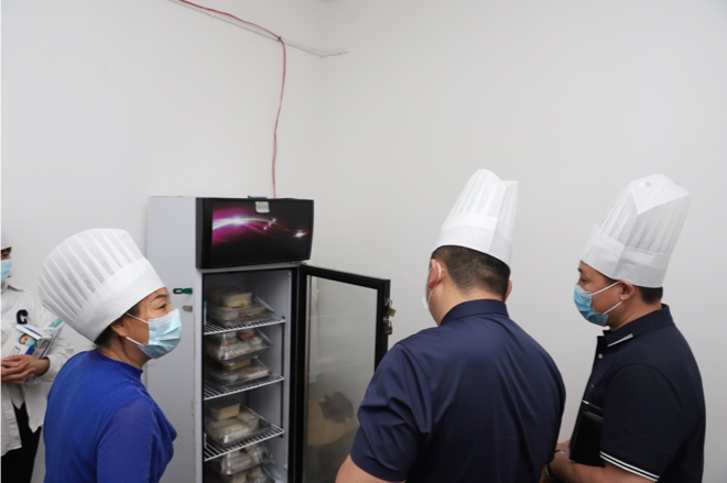 专家组抵达学校后,率先到食堂进行现场检查。专家组按照食堂运转流程依次逐一查看食堂各个环节,一边查看一边询问还一边提出建议。