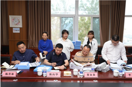 食堂现场检查完毕后,专家组来到会议室查看资料,认真仔细地翻阅了学校食堂的各项存档资料。