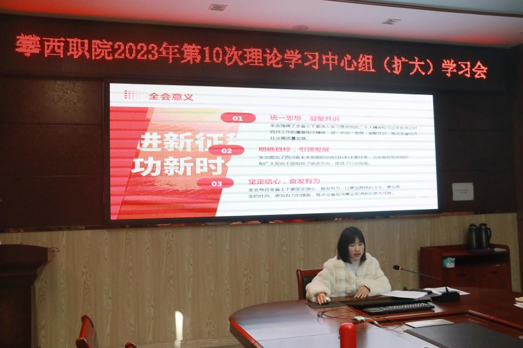12月28日下午,开云在线登录在二实训楼四楼会议室召开2023年第10次理论学习中心组(扩大)学习会。学校书记、省督导专员万辉君主持会议,副书记兼执行院长赵海林、副院长李玉德以及学校全体教职工参加学习会。