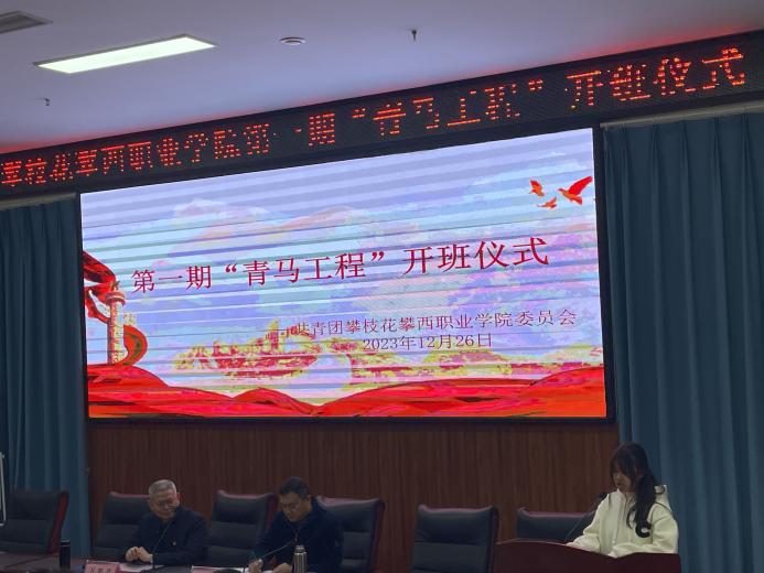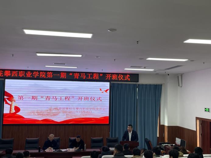 团委书记刘兴科宣读攀西职院第一期“青马工程”培训安排,本次培训共32课时,将从集中理论学习,开展红色教育,提升技能培训,加强实践锻炼,组织志愿服务、素质拓展等方面展开培训,并建立完善日常管理、考核评价、淘汰退出、跟踪培养,跟踪培养等机制。