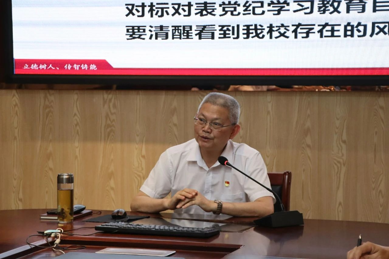 万辉君以“强化党纪学习,筑牢党性根基,为推进学校高质量发展提供坚强纪律保障”为题,从“谈认识体会”“找风险隐患”“提改进措施”等三个方面,紧密联系学校实际,作了全面系统和深入浅出的讲解辅导,为与会党员干部上了一堂生动深刻的纪律党课。