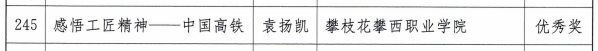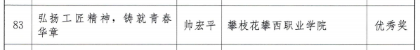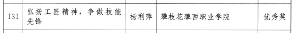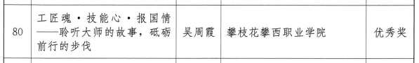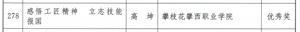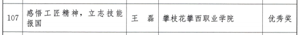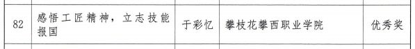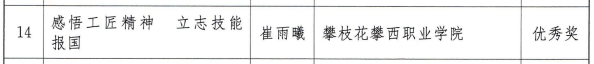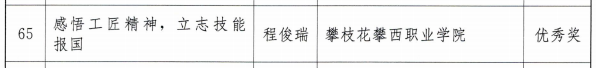 获奖同学崔宇曦表示,我们要用行动诠释和发扬工匠精神,努力学习成才,争做未来技能先锋,争当大国工匠,为国家为社会奉献攀西职院学子的青春力量。