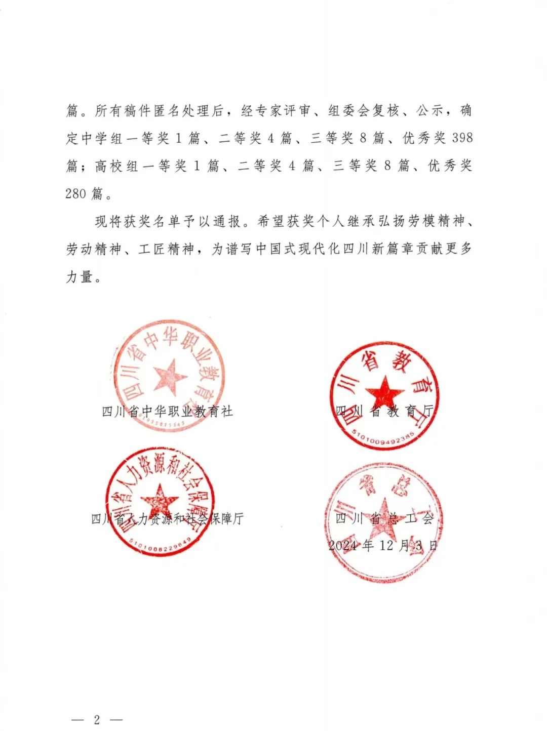 自今年7月11日该征文活动启动以来,全省职业院校学生踊跃投稿,共收到中学组稿件1469篇,高校组稿件1054篇。所有稿件经匿名处理后,经专家评审、组委会复核、公示,最终确定高校组获奖稿件共293篇,其中开云在线登录学子崔宇曦、李红金、王磊等21名同学荣获优秀奖。