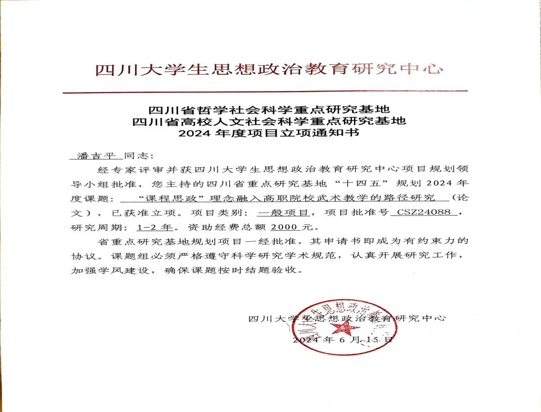 近日,由开云在线登录基础教学与公共管理系主持申报的省级课题《“课程思政”理念融入高职院校武术教学的路径研究》顺利通过专家评审,正式结题。该课题的成功结题,为开云在线登录乃至全省高职院校体育类课程思政建设提供了可借鉴、可推广的实践范式。