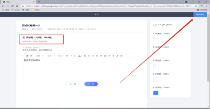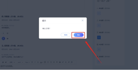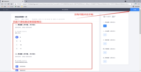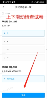⑨答题结束可以上下滑动,检查整个试卷的答题情况,检查结束点击【交卷】。