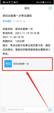 ⑤点击【收件箱】,点击【考试通知】(若无红点提示,不影响考试,请按照下列提示选择);