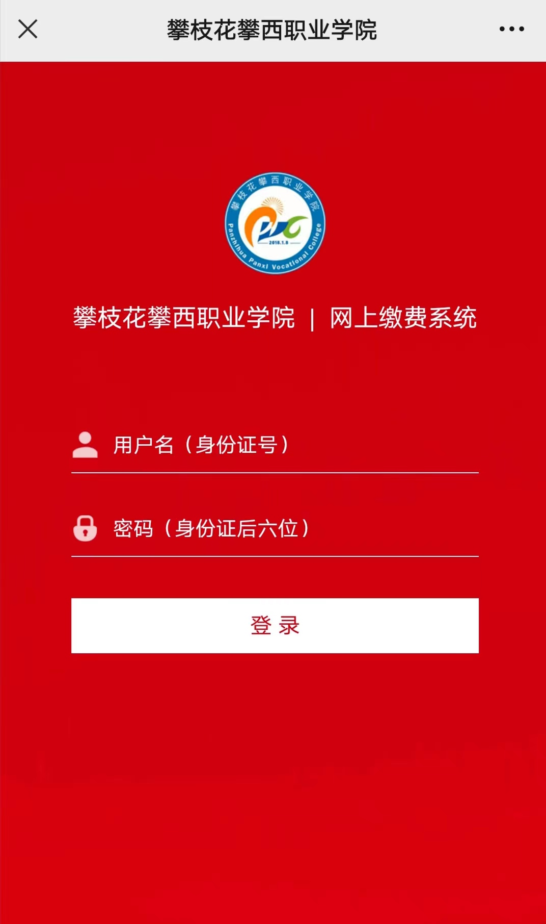 2、缴费系统登录:用户名为学生本人身份证号码,密码为学生本人身份证号后6位数。
