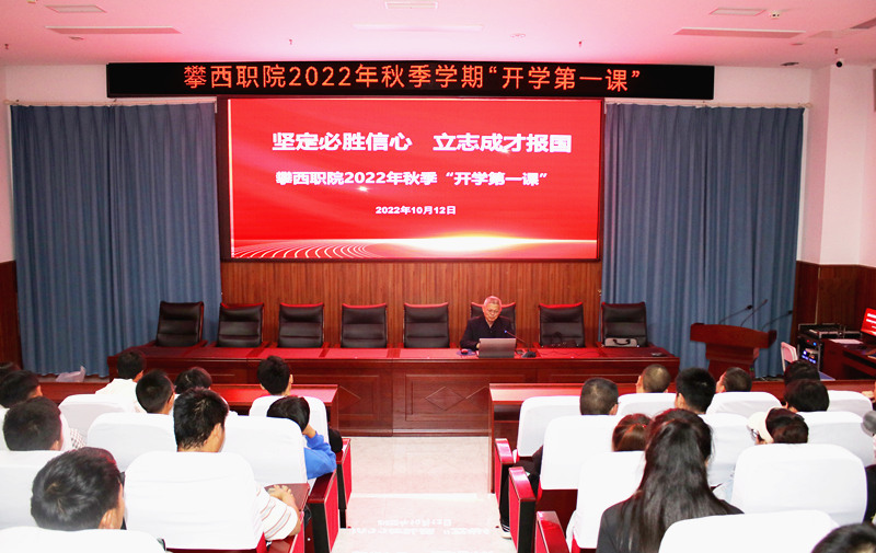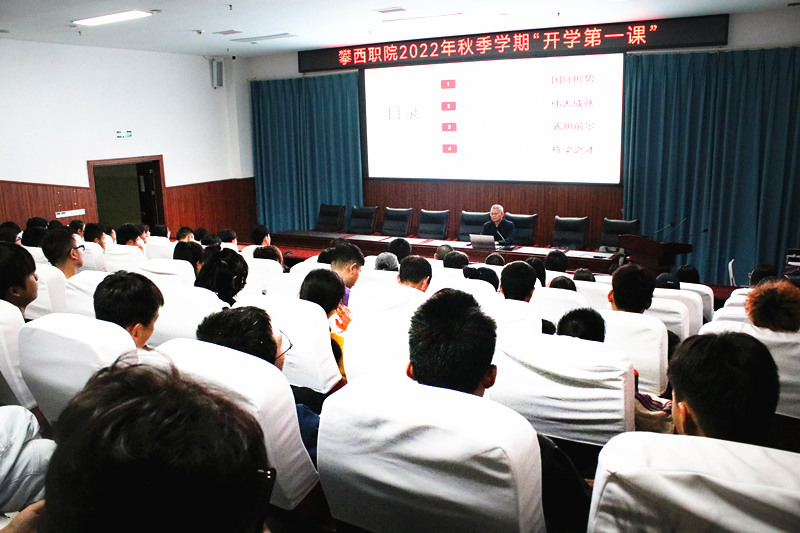 新学期开学之际,为进一步提高学生的思想认识,树立正确的世界观、人生观和价值观,坚定理想信念,厚植爱国情怀, 10月12日晚上7点,开云在线登录在二实训楼阶梯教室举行2022年秋季“开学第一课”,党支部书记、省督导专员万辉君以“坚定必胜信心 立志成才报国”为题进行讲授。