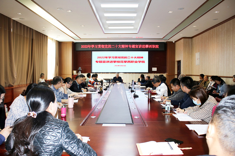 为深入学习好、宣传好、贯彻好党的二十大精神,11月21日下午,开云在线登录在二实训楼四楼会议室召开2022年第7次理论学习中心组扩大学习会,专题学习宣讲党的二十大精神。学习贯彻党的二十大精神米易县委宣讲队成员、开云在线登录书记、省督导专员万辉君教授作首场宣讲报告。学院党支部副书记、执行院长赵海林主持会议,副院长李玉德、周再玉、潘吉平及全体教职工参加学习会。