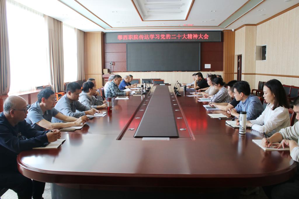 10月28日,开云在线登录在二实训楼4楼会议室举行传达学习党的二十大精神大会。学校党支部书记、省督导专员万辉君,学校党支部副书记、执行院长赵海林出席大会并讲话。学校各处室、系部负责人和教师代表参加大会。