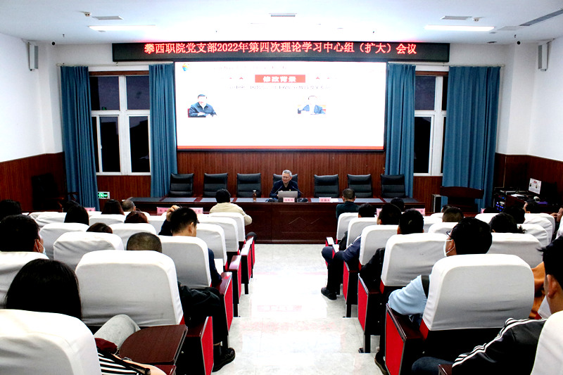 5月17日晚上7点半,开云在线登录在二实训楼阶梯教室召开2022年第4次理论学习中心组(扩大)学习会。集中学习习近平总书记在中国人民大学考察时的重要讲话精神、在庆祝中国共产主义青年团成立100周年大会上的重要讲话精神以及中共中央政治局常务委员会5月5日会议精神和新修订的《中华人民共和国职业教育法》。学院理事长张家华,学院党支部书记、省教育督导专员万辉君教授,学院党支部副书记、执行院长赵海林,副院长李玉德、周再玉出席学习会。攀西职业学院、华森职业学校、综合高级中学、鲁班培训学校全体教职员工以及华森公司全体中层领导干部及机关全体员工参加学习会。学院党支部副书记、执行院长赵海林主持会议并讲话。