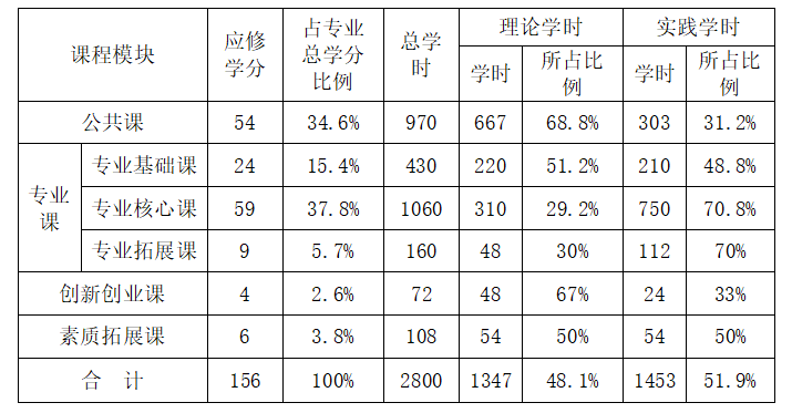 (2)办学层次:全日制教育,专科层次 。总学时为学时2800学时,156学分。