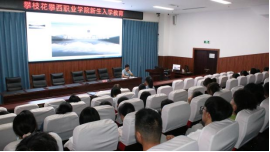 学生工作处处长助理刘兴科从大学生思想政治教育和管理的特点入手,结合大学生的实际,从学习、管理、全面锻炼、学生奖助学金及组织发展等方面为新生讲述了大学生的成长成才教育。讲话中把学生在校具体的注意事项、在大学阶段应注意的细节问题为新生做了详细解答。