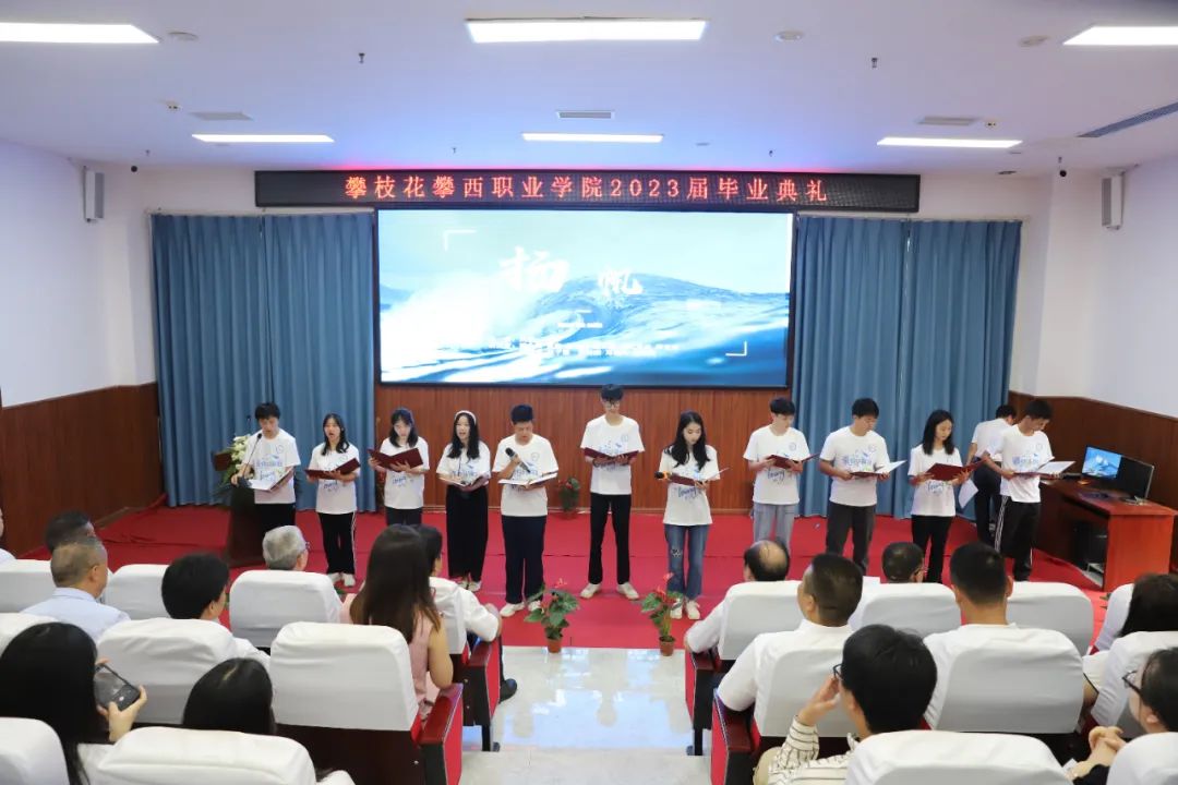 三年光阴飞逝,无数美好的时光碎片汇聚成独家记忆,都印刻在每位攀西毕业生的心里。典礼前现场播放了毕业生风采视频《青春不散场》,视频回顾了毕业生在校期间学习、生活、成长的一幕幕场景,记录下一个个历经锤炼、攀登,初心不变、潜心砥砺的奋斗缩影,寄托着母校对每一位毕业生的无限祝愿和殷切希望。