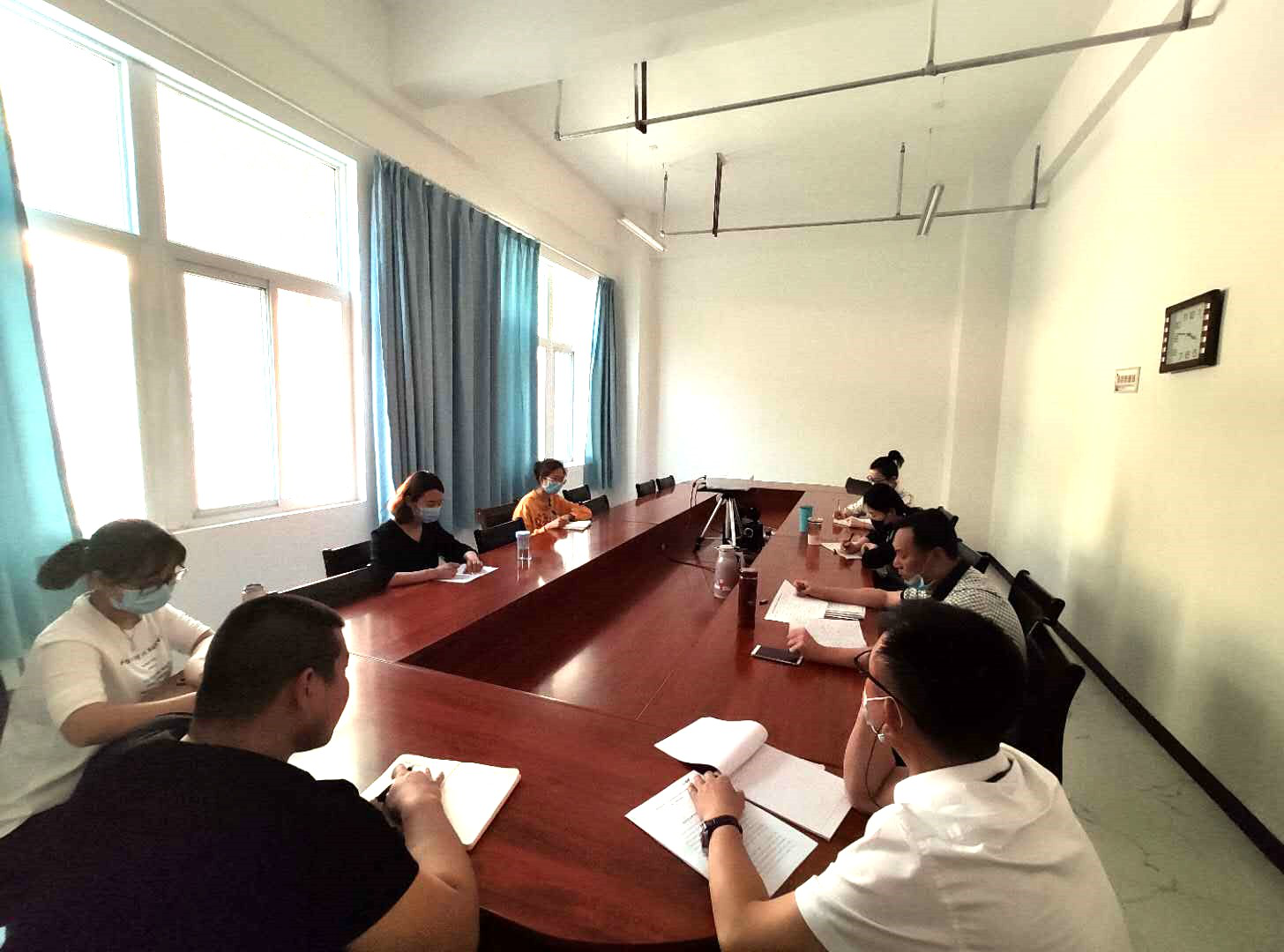 在此次会议中,伍主任指出,要建立会前学习制度,本次例会学习了国家教育方针政策;其次,对课程教学的三维目标达成进行了分析,同时强调了政治纪律,在与学生交流过程中的注意事项,注意强调弘扬正能量,摈弃负能量;再次,对教学工作提出了四点要求,即“立德树人,优适方法,注重内化,确保实效”,同时对近期工作进行了安排布置;伍主任还对教师成长提出了建议,要求所有教师做出三年发展规划、明确自己三年的奋斗目标,此外,还对教师业绩考核思路进行了分析。最后,就网络教学如何进行组织、网络教学的基本流程等问题进行了讨论。主任助理付君在此次会议中提出两点意见,第一,对网络课的组织教学问题进行了讨论,并对教学流程讨论结果进行了梳理,要求老师打好学院教学第一仗;第二,就科研工作思考方向组织了讨论。大家发言踊跃,氛围热烈,纷纷表示赞成并将积极践行。