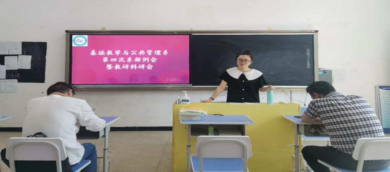 开云在线登录基础教学与公共管理系于2022年5月13日15:00在二实训楼3-1会议室召开本系第四次教学工作例会暨教科研会,此次例会由系副主任付君主持,本系全体教师参加。