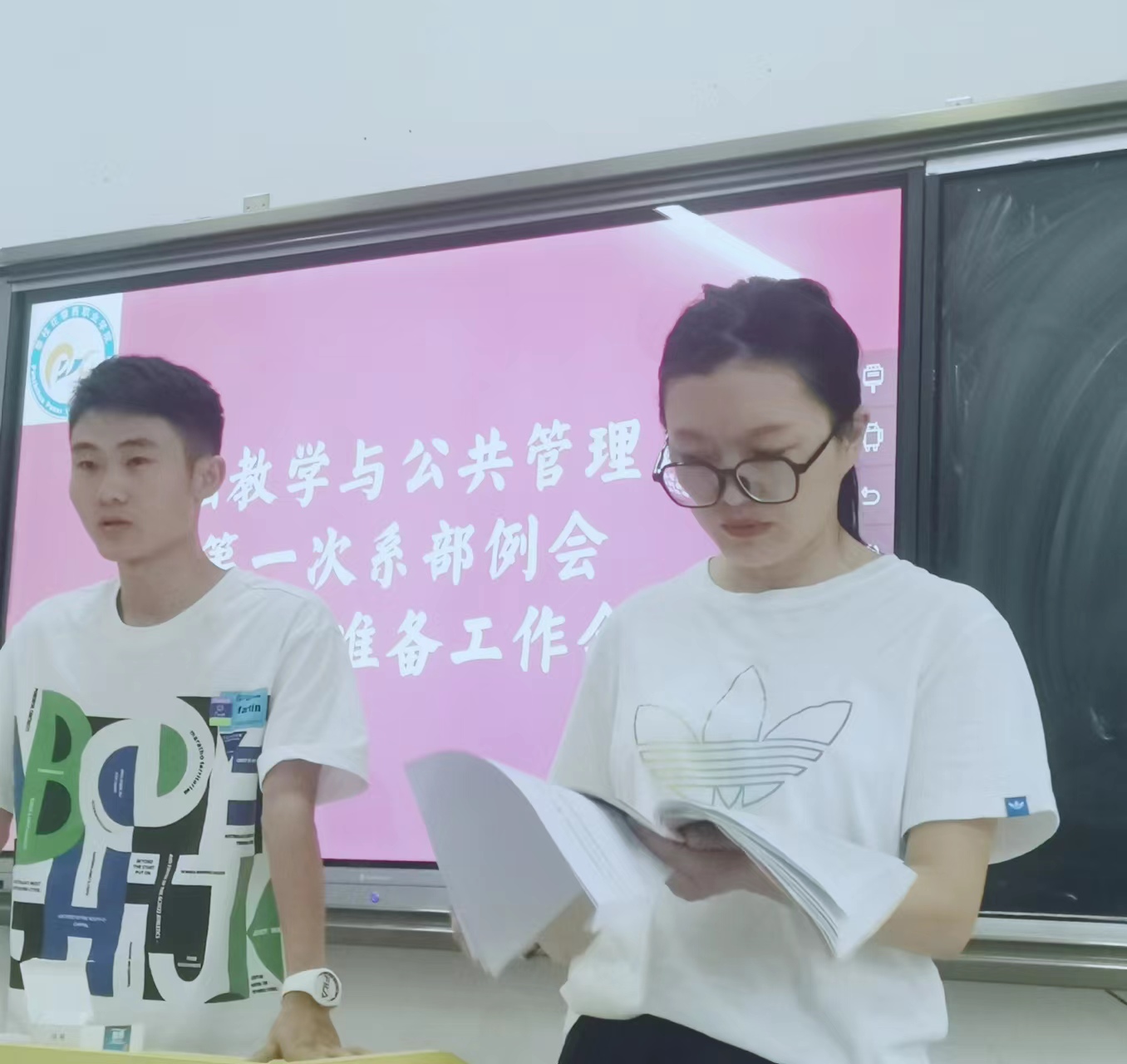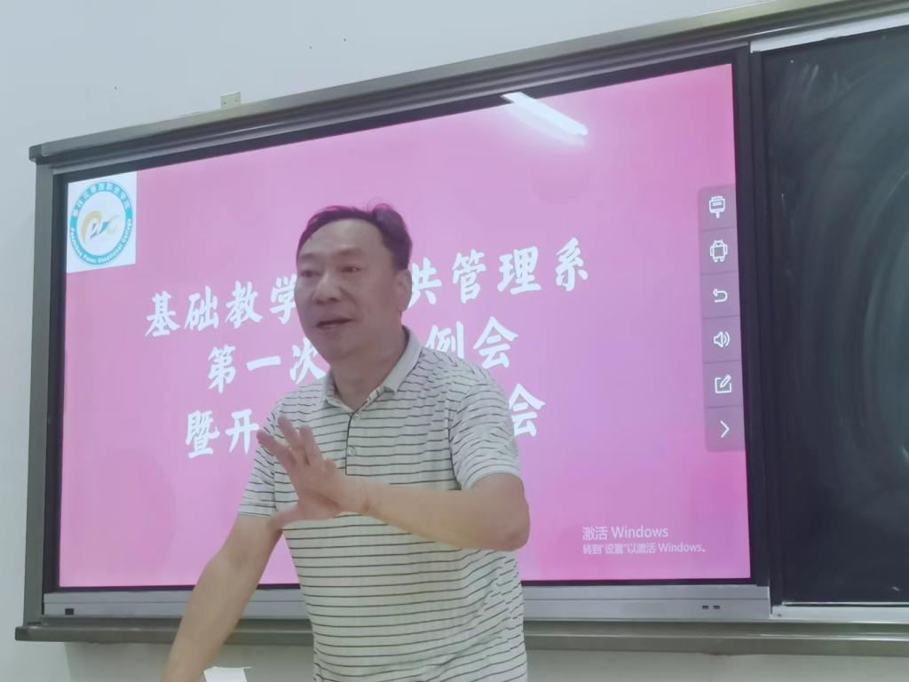 基础教学与公共管理系于2022年9月1日10时,在二实训楼3—1教室召开基础系第一次系部例会暨开学准备工作会。基础系全体教师参加,基础系副主任付君主持。