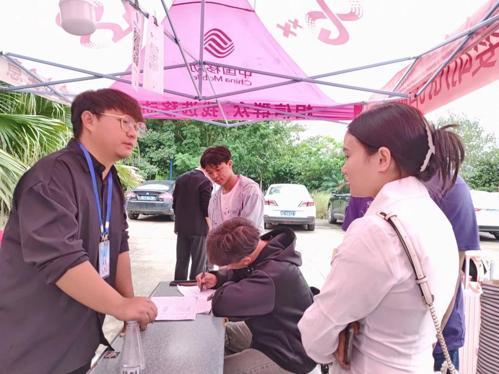 一张张热情的脸,一句句亲切的问候,一项项贴心的服务。高铁站、汽车站都有设立新生接待点,每个站点都有老师和学生进行接待,并有专车接送。老师和辅导员坐镇报名点,做新生接待工作,并与家长亲切交谈。
