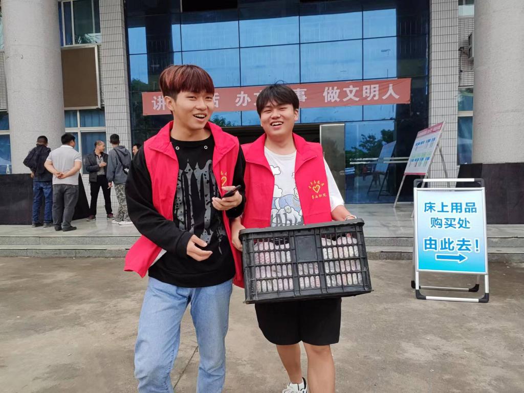 询问以及回答家长学生问题,登记学生信息,收集学生的报名资料,细致做好学生家长的服务工作。师哥师姐组成志愿者服务队,不管是烈日炎炎,还是大雨倾盆,都驻守在每个新生需要的地方。从招就处到系部,再到寝室,处处涌动着他们忙碌的身影,送新生礼包、拉皮箱、搬被褥,忙得不亦乐乎。