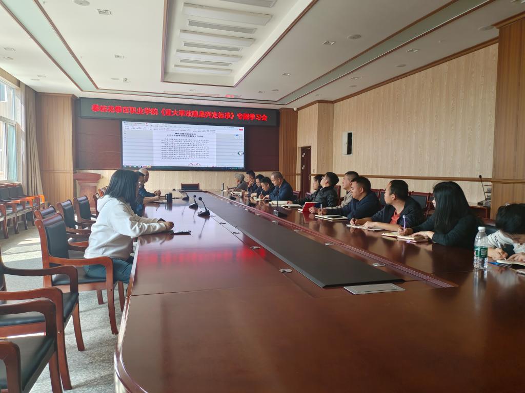 邹副校长领学了《教育系统重大安全事故隐患判定指南》。校园安全涵盖了教育教学、后勤、宿舍、食堂、门卫等学校工作的方方面面,邹副校长向大家解读了文件精神,从消防管理、校舍宿舍使用、食品、实验室这几方面的重大安全事故隐患判定标准,给全体与会人员敲响了警钟。