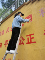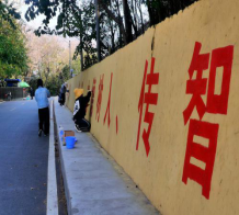 二、此次墙面字体补充进行了两天上午;把学院道路旁的字体全部补充完毕。