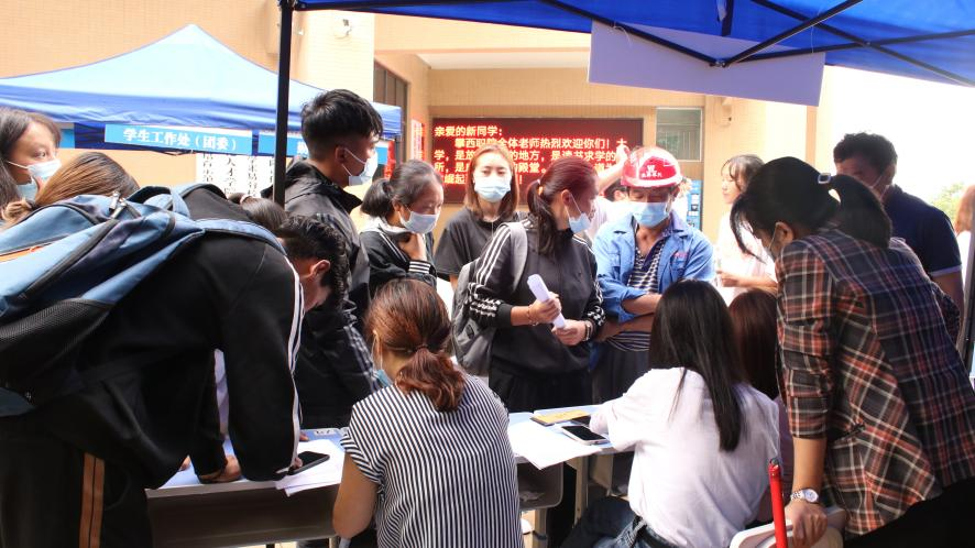 迎新工作如火如荼,到处都是忙碌的身影。大二的学长学姐与各系部的教师不厌其烦地给新生、家长回答着他们提出的各种问题。各系部教师和学生去到火车站和汽车站接才到的新生,在新生报名完成后主动帮着拎行李,一路谈笑风生。新生细声地叫着“学长学姐”,老生们也开心的为新生介绍了食堂和宿舍。