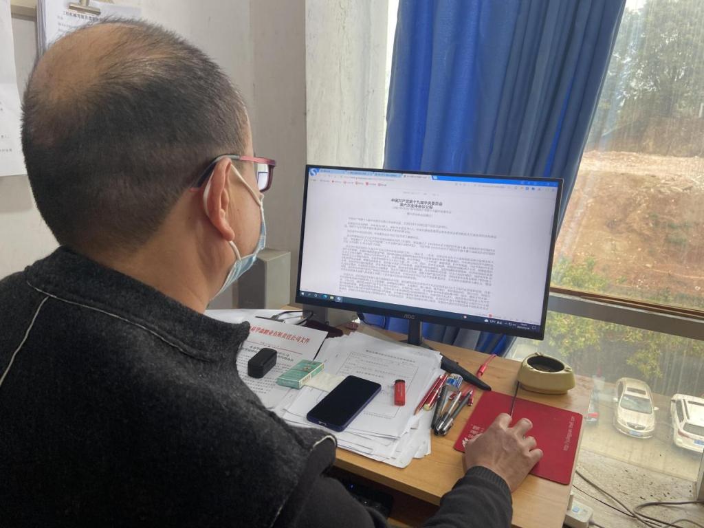 后勤保卫处党员、入党积极分子和中层干部在二实训楼四楼会议室,参加观看十九届六中全会精神新闻发布会。中国共产党第十九届中央委员会第六次全体会议,出席这次全会的有,中央委员197人,候补中央委员151人。