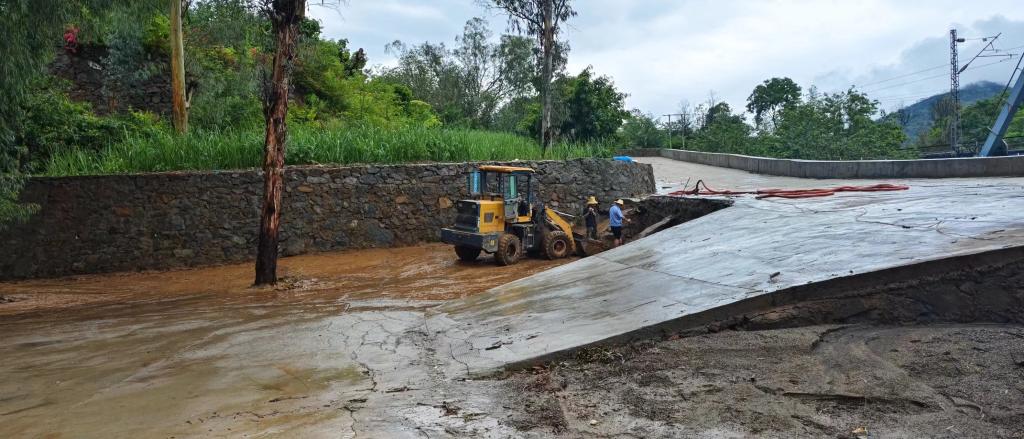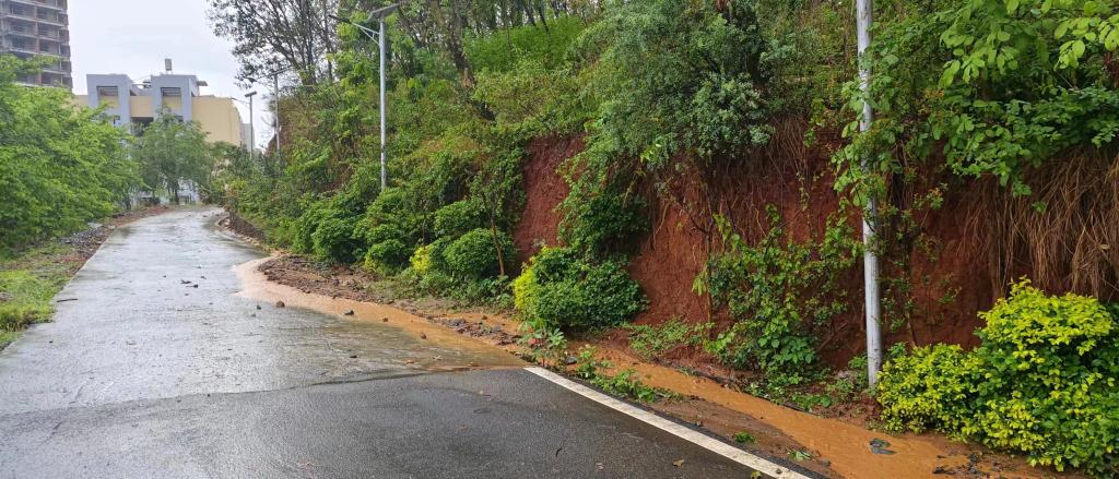 学校二实训楼下泥沙堵塞,造成坝子被水淹。后勤保卫处相关人员进行紧急抢险,铲淤泥、扫碎石、清理树枝,迅速打通排水通道。C4楼旁天桥公路排洪沟渠堵塞,相关区域责任单位艺术设计系立即组织人员对其进行紧急疏通。