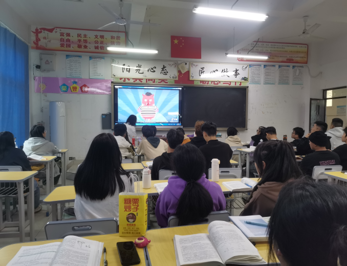 在班会上,团支书为同学播放“防艾宣传”视频,并讲解了关于艾滋病的相关知识。