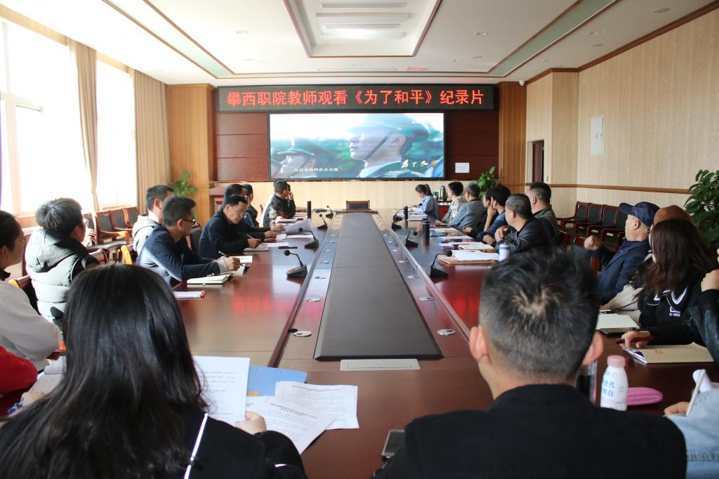为深入贯彻落实习近平总书记在纪念中国人民志愿军抗美援朝出国作战70周年大会上的重要讲话精神,深入开展“四史”学习教育,大力弘扬伟大的抗美援朝精神,加强新时代爱国主义教育,教育引导广大教职工厚植爱国主义情怀,11月25日下午学院组织全体教师在二实训楼四楼会议室共同观看了大型电视纪录片《为了和平》。