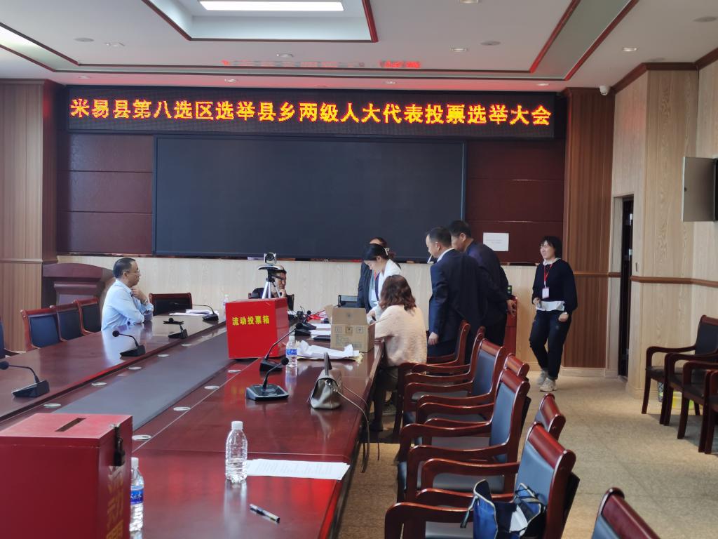 米易县第十九届人民代表和全县各乡(镇)新一届人民代表大会第八选区由米易县白马工业园区管理委员会、米易华森糖业有限责任公司(以下简称华森公司)及华森公司子公司组成,选民人数798人。10月26日早8:30,白管委相关领导、选民及华森公司相关领导、各子公司选举负责人准时到攀西职业学院二实训楼四楼会议室参加选举大会。因华森公司下属子单位参选选民较多,且大部分为在读学生,为节约选举时间,本次选举大学采取主会场及分会场分别进行。