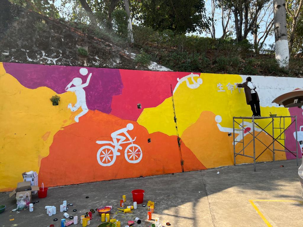 为了进一步丰富校园文化生活,营造浓厚的校园文化氛围,优化育人环境。提高同学们的艺术修养、审美情趣,开云在线登录艺术设计系全体教师发挥主人翁精神,利用课余时间,放弃休息,昼夜加班加点,积极投入到主题文化墙的创作和绘制中,目前《生命不息,运动不止》等主题墙绘已完成一半,待完成后,将成为学院文明校园创建和校园文化建设的一个新亮点,也会是学院风光的一个新看点。