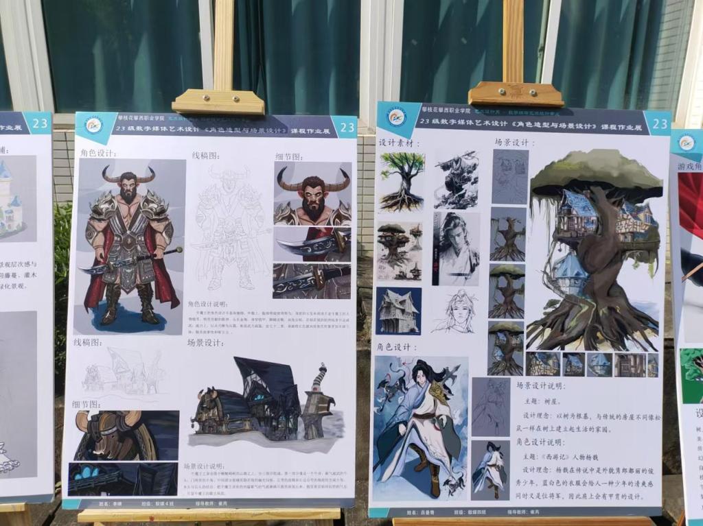 12月12日,一场别开生面的艺术展览在校园教学楼外展出。此次绘画展览系艺术设计系学生作业作品展,由艺术设计系主办。作品聚焦于艺术系学生们的创意结晶——以《西游记》为灵感源泉的角色造型设计与自由想象的单体建筑场景设计。这些作品风格多样、创意无限,不仅展现了学生们扎实的艺术功底,更彰显了他们天马行空的想象力与创新精神。
