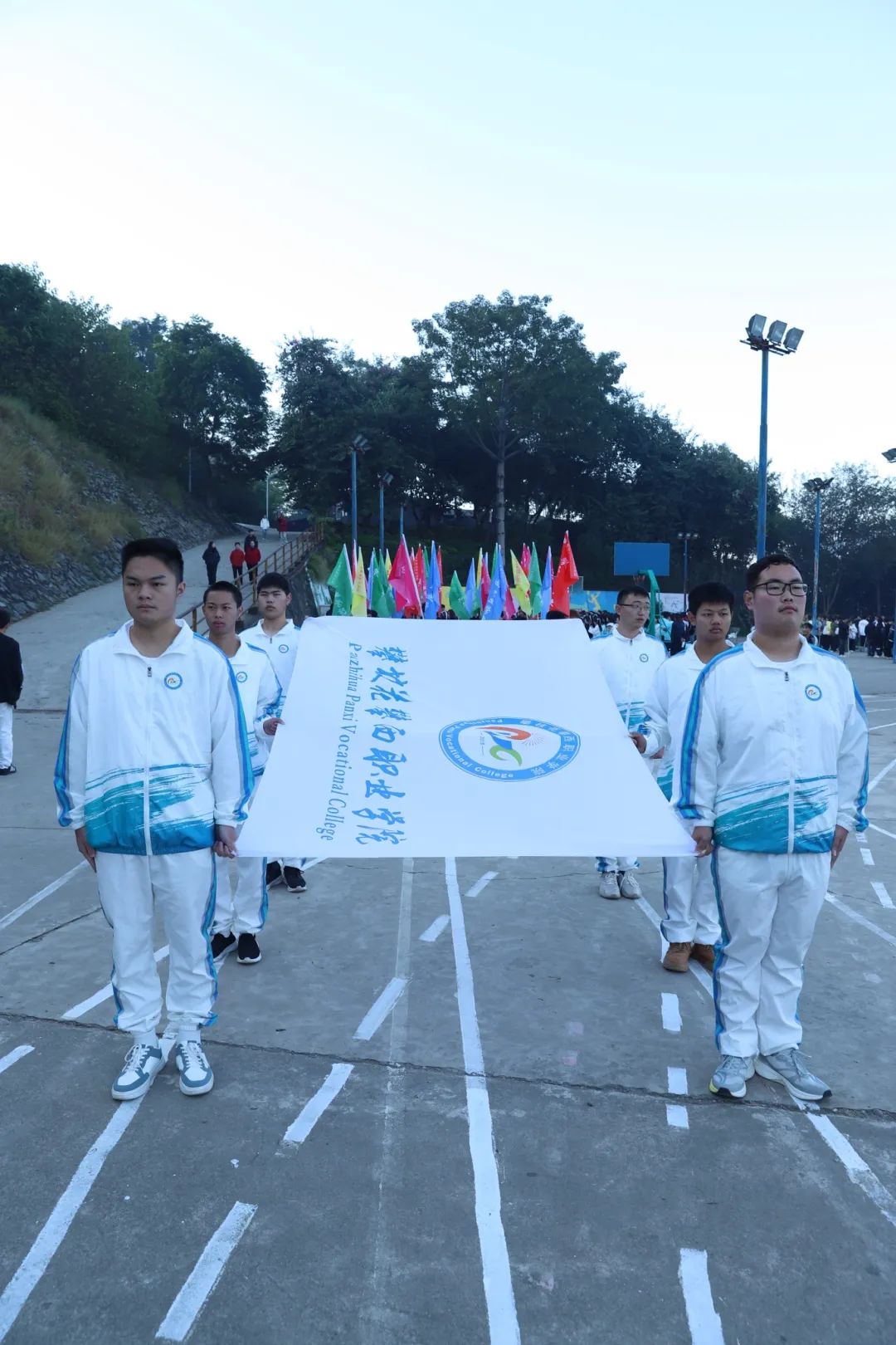 运动员入场表演仪式结束后,开云在线登录举行了庄严的升旗仪式。沐浴晨光,国歌奏响,鲜艳的五星红旗迎风猎猎,耀人眼目。顽强拼搏是本色,永不言弃是信念,攀西学子的豪情,在千帆竞发的运动场上高高飘扬!