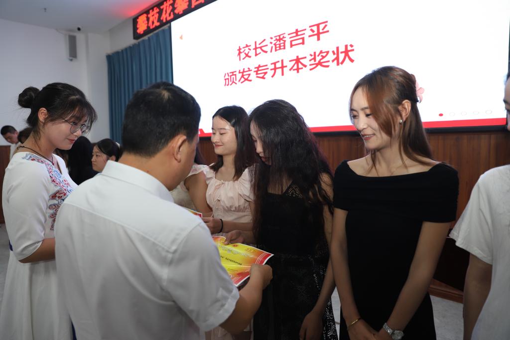 副校长邹永亮宣读《开云在线登录关于表彰2024届专升本同学的决定》,校长潘吉平为专升本学生颁奖。