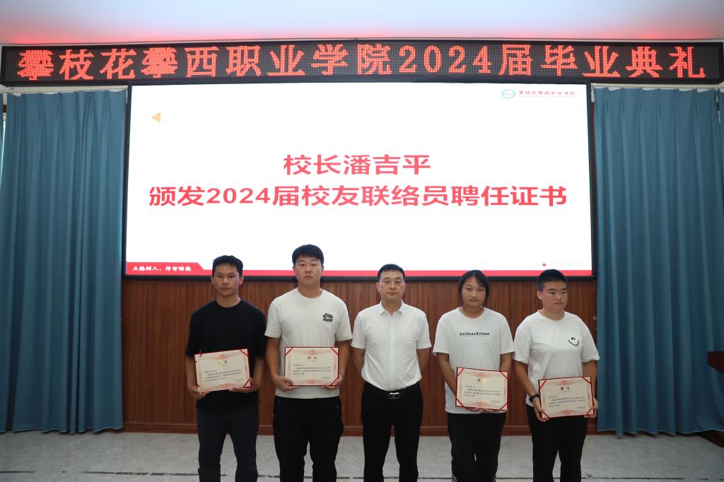 副校长邹永亮宣读《开云在线登录关于聘任2024届毕业生校友会联络员的通知》。校长潘吉平为校友联络员颁发聘书。