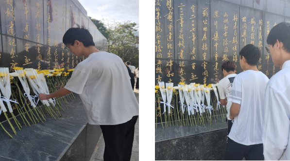在张妮老师引领下,师生们肃立在烈士纪念碑前,深深鞠躬并向烈士纪念碑献花,表达对英雄们的崇高敬意和无尽的哀思。接着,师生们跟随解说员走进墓地,这些烈士墓仿佛也在静静地讲述着先烈们的故事,激励着同学们铭记历史,珍惜和平,为中华民族的伟大复兴贡献自己的力量。最后,师生们来到纪念馆,参观了展出的历史文献和珍贵图片。这些文献和图片生动地展示了革命历史的艰辛与伟大,让师生们更加直观地感受到先烈们为国家和民族付出的巨大牺牲。