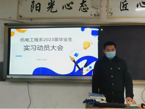 2022年12月28日,机电工程系在教学楼210召开实习动员大会。机电工程系主任助理谢韦苇、机电工程系汽车检测与维修技术专业负责人刘万礼、机电工程系辅导员樊季东和2023届毕业生出席会议。