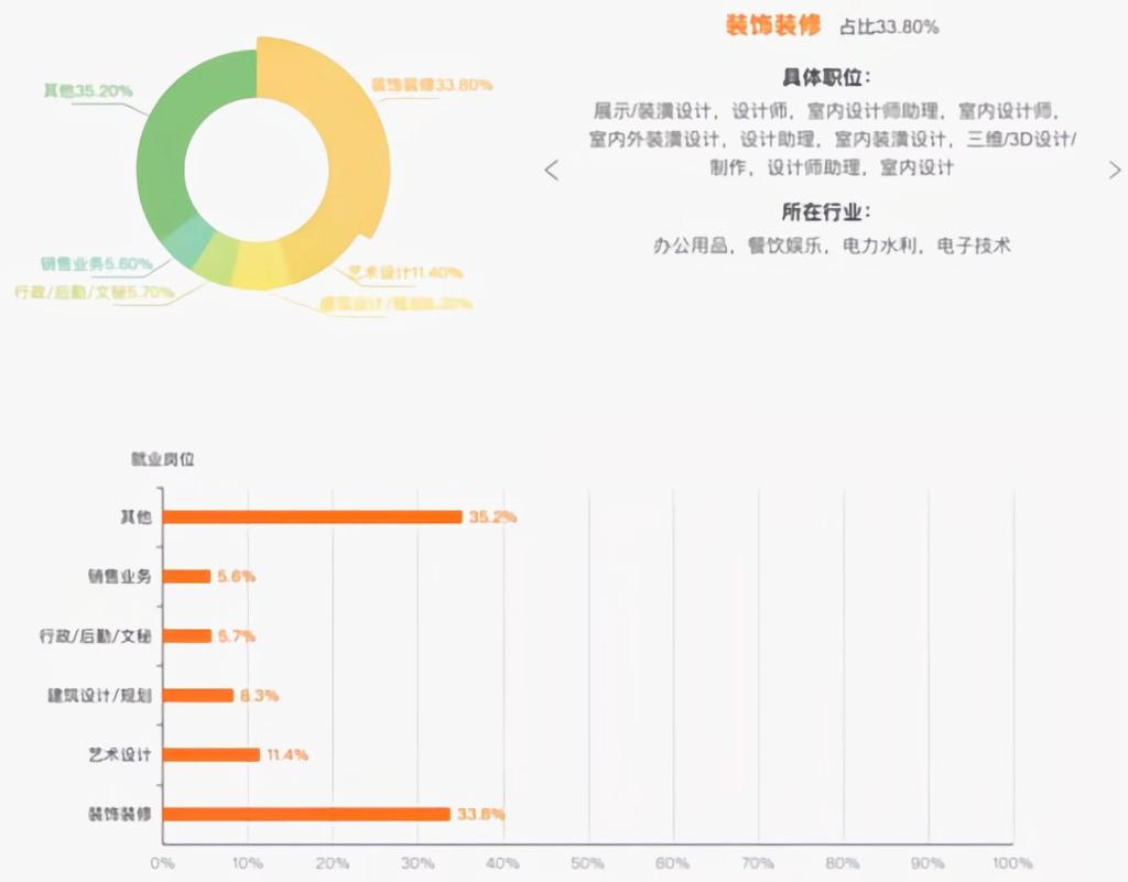 平面设计师、建筑装饰设计师、环境艺术设计师、景观设计师、室内设计师、会展设计师、软装设计师、效果图设计师、装饰预算员、CAD绘图员、施工员、材料员等。