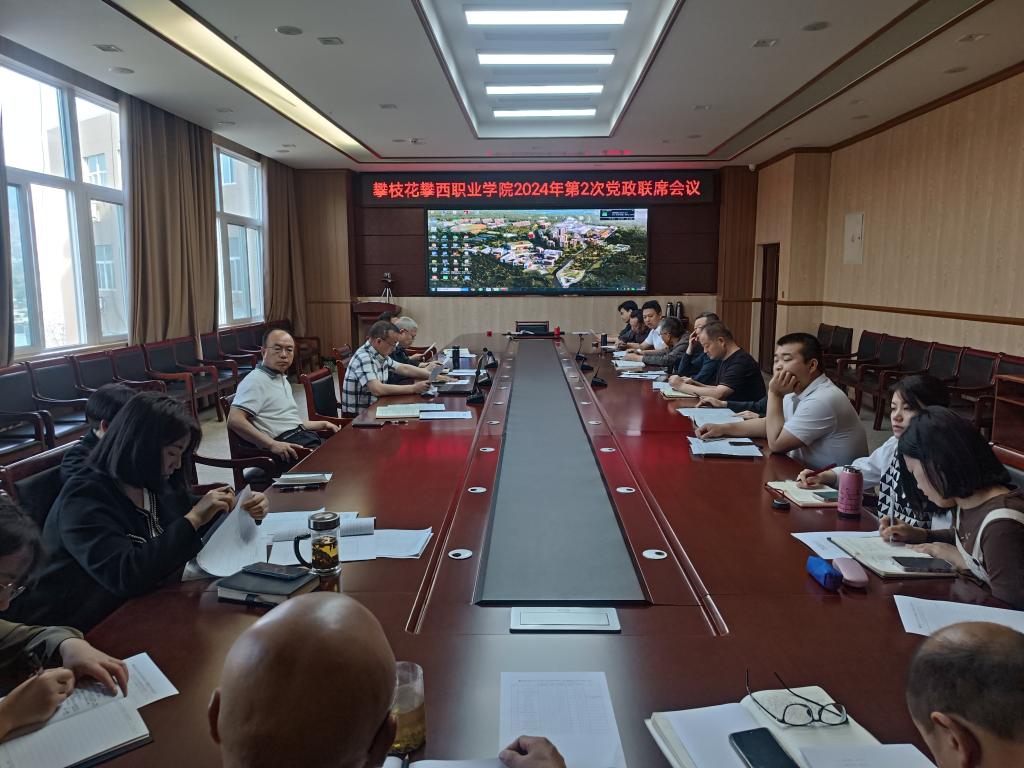 2024年3月14日上午,攀西职院2024年党政联席会议在二实训楼会议室召开;学校党组织书记、省政府督导专员…
